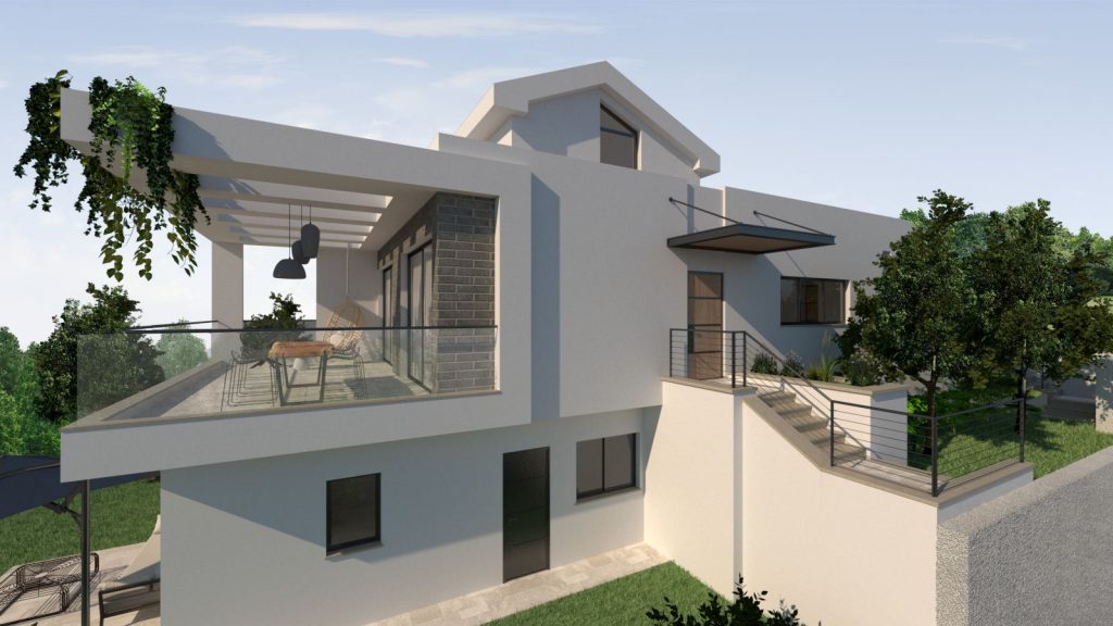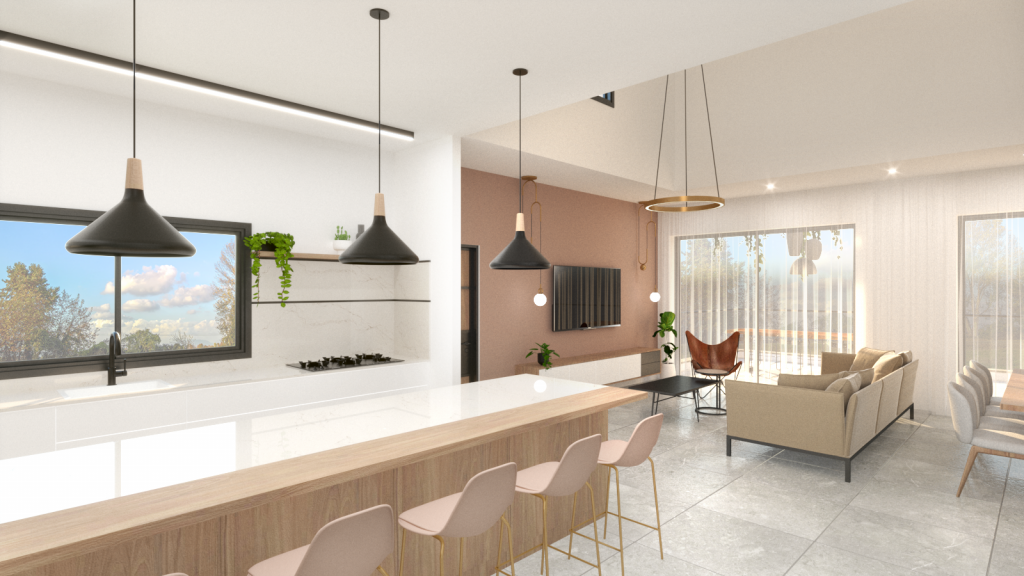 בית מגורים פרטי שעוצב בסגנון כפרי עבור זוג צעיר. העיצוב כלל עיצוב והתאמה בין החוץ לפנים ליצירת מבנה הרמוני באווירה חמימה וביתית.